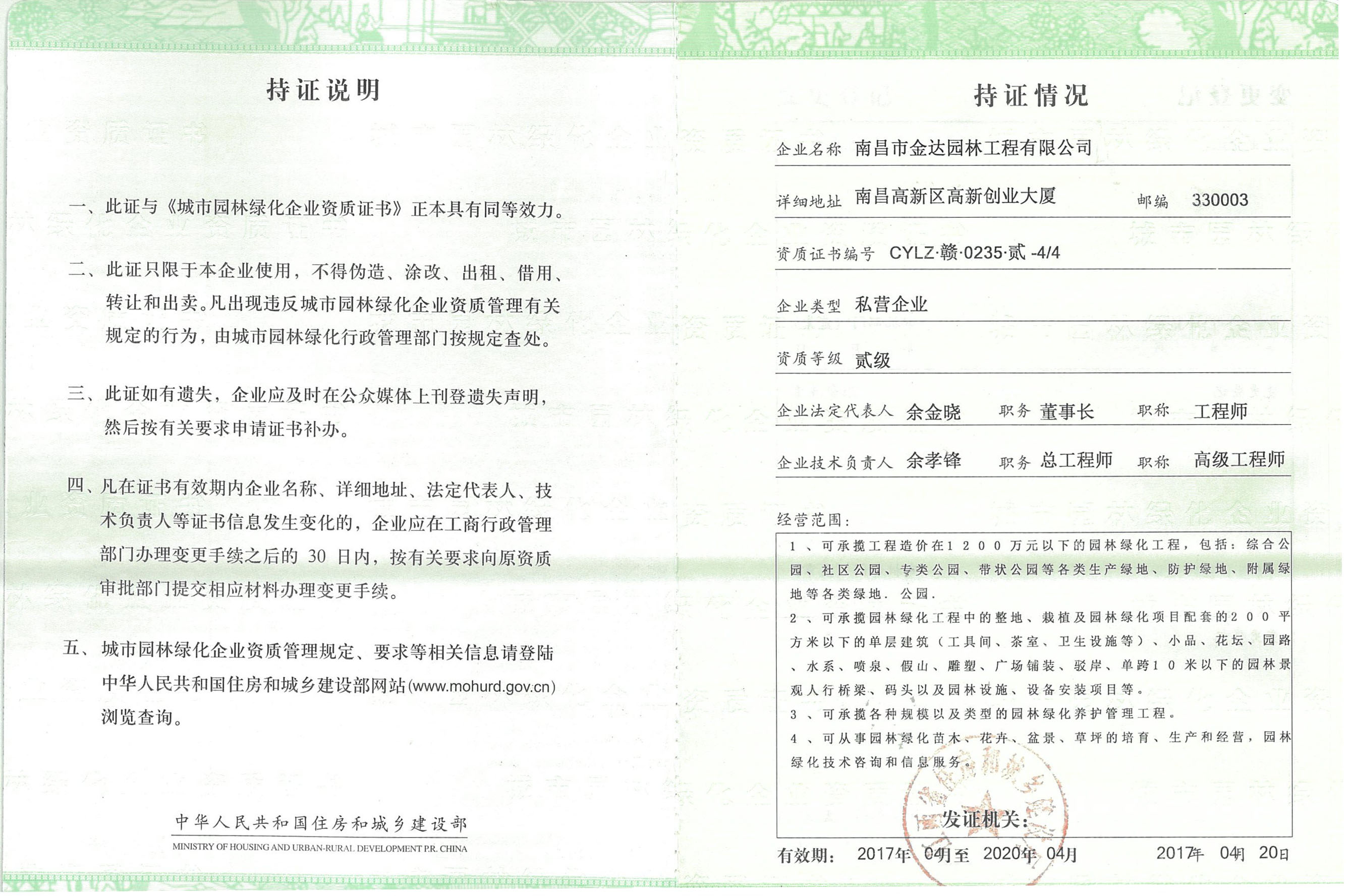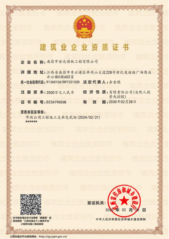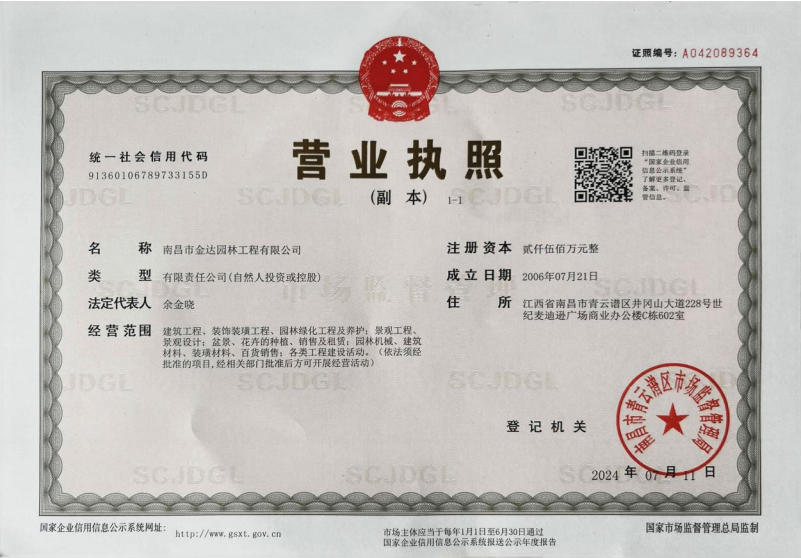 南昌市金达园林工程有限公司成立于2006年,是一家具有城市园林绿化企业二级资质,专业提供园林绿化工程施工,养护管理,苗木生产、销售及园林绿化设计的综合性园林企业。